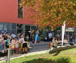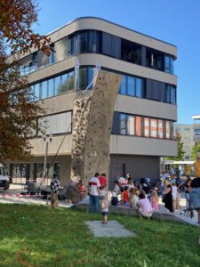 Am 19.09.2025 fanden anlässlich des Weltkindertags nachmittags vor dem Bürgerhaus Möhringen viele Spiel- und Sportangebote für Kinder und Jugendliche statt. Auch Erwachsene waren willkommen, den Tischtennisschläger zu schwingen. Bei bestem Sommerwetter war der Platz voller Leben! Die Angebote reichten von Kletterwand und Rollstuhl-Parcours bis Origami und Steine bemalen.